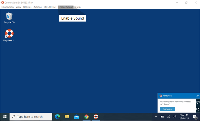 Note: Ending a session will also remove the HelpDesk application from your computer.