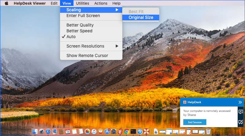 Yes, you can scale the remote computer's desktop screen to fit within your local computer window. By default, the HelpDesk desktop screen auto fits your local computer window but you can scale the desktop screen as per your requirement.